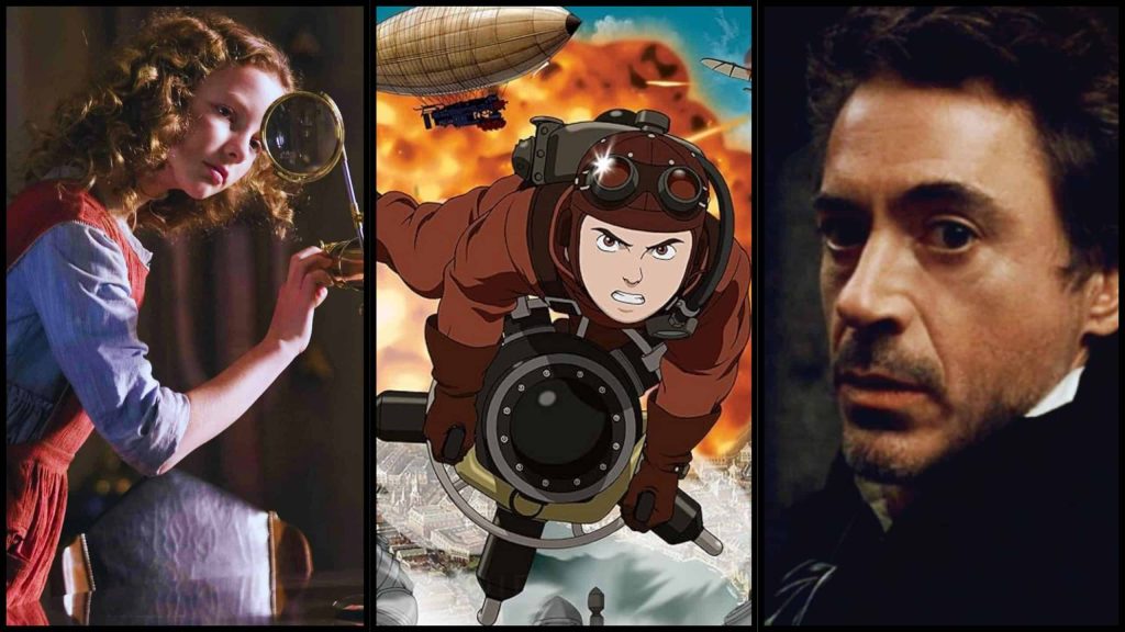 Esse cenário retrofuturista já inspirou diversos tipos de produções, e no cinema não é diferente. Há uma variedade de filmes que utilizam imagens e cenários com engrenagens e maquinários para compor suas histórias.