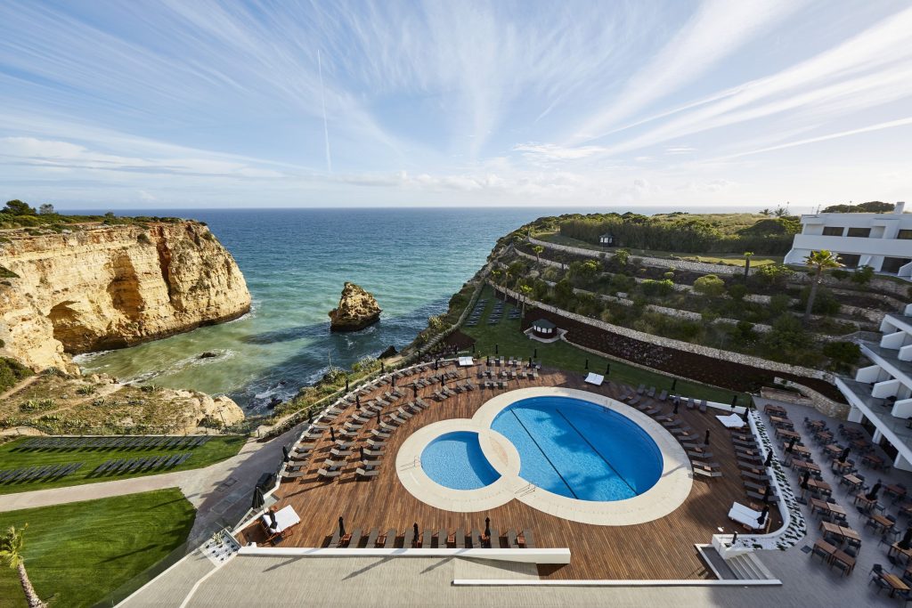 Tivoli Carvoeiro Algarve Resort: Apartado 1299 – Vale do Covo – Praia do Carvoeiro 8401-911 Lagoa, Portugal / Diárias, em média, a partir de 200 €, com café da manhã incluso