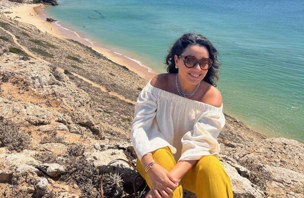 Daniela Filomeno em gruta pela região do Algarve, que possui paisagens recheadas de falésias e praias de águas cristalinas em Portugal