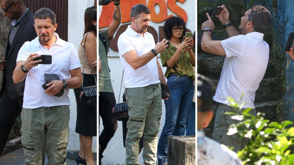 Por lá, ele também conheceu o grupo de Teatro “Nós do Morro”, acompanhado por sua equipe e o também ator e ex-BBB Babu Santana. Nas ruas do bairro, o astro espanhol aproveitou para fazer os próprios registros e interagir com os moradores.