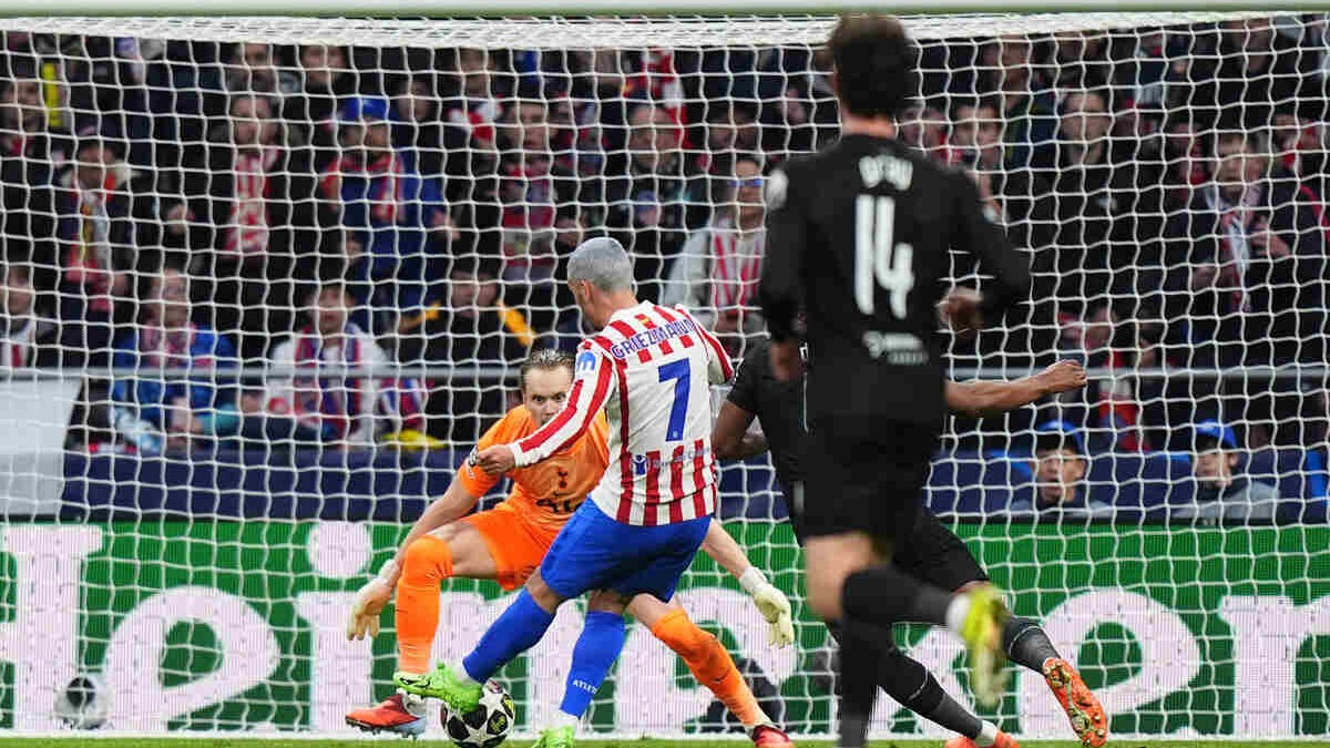 Com 22 minutos de jogo, o Atlético de Madrid já aplicava uma goleada sobre o atordoado Tottenham. Os Spurs, afinal, acumularam erros defensivos consecutivos. E os Colchoneros, assim, aproveitaram as falhas. No primeiro gol, a defesa inglesa errou, Lookman conseguiu pegar e tocar para Julián Álvarez, que passou a bola para Llorente balançar as redes. Posteriormente, Van de Ven escorregou na intermediária, e Griezmann aproveitou a bobeada do zagueiro para marcar o segundo. Logo após a saída de bola, Van de Ven atrasou a bola para o goleiro Kinsky, que furou a bola. Julián Álvarez, sozinho, chutou para o gol vazio.