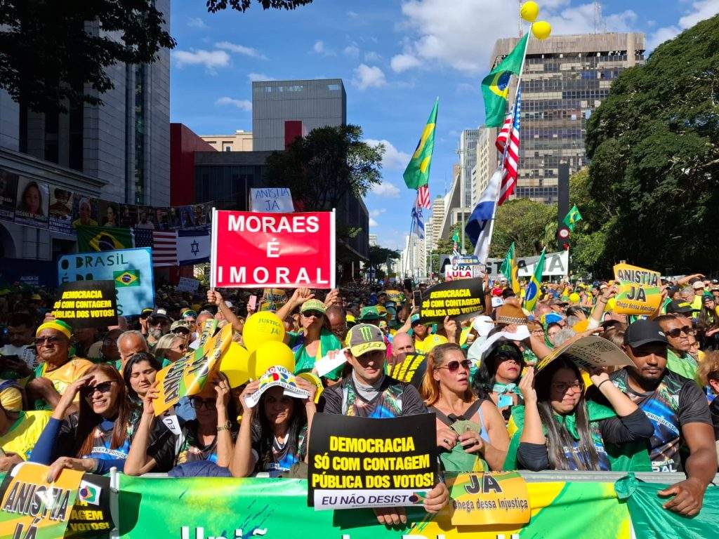 A manifestação na Avenida Paulista seguiu com senadores discursando. Marcos Rogério (PL-RO) se juntou ao time daqueles que defendem a liberdade de Bolsonaro. “Querem prender um homem que não fez nada de errado.”