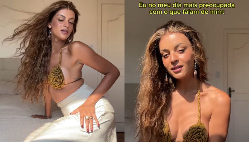 “Eu no meu dia mais preocupada com o que falam de mim”, escreveu, enquanto apareceu posando ao sol na filmagem. “Fala mais”, ainda acrescentou na legenda.
