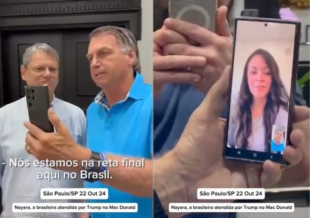 Nayara, a cidadã brasileira que foi atendida pelo ex-presidente Donald Trump em um drive-thru da rede de lanchonetes Mc Donald’s, conversou com o ex-presidente Jair Bolsonaro (PL) durante uma chamada de vídeo, realizada na terça-feira 22. O registro do momento foi compartilhado por Bolsonaro em suas redes sociais.
