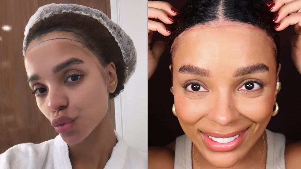 Brunna também relatou que fez um lixamento na testa para retirar duas ondulações e deixá-la “retinha”. No estágio de sua recuperação, ela disse que já pode prender o cabelo, fazer escova e químicas — mas por 90 dias é necessário evitar movimentos que puxem o couro cabeludo para trás.