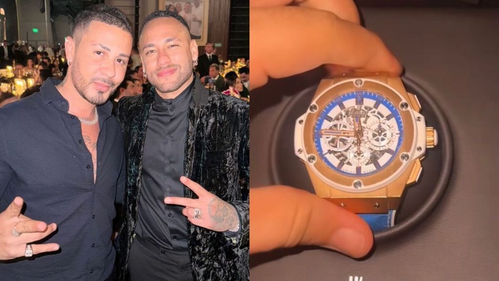 Avaliado em mais de R$ 260 mil e com apenas 50 unidades em todo o mundo, o modelo Hublot King Power Big Bang Miami 305 em ouro rosé foi arrematado pelo influenciador por R$ 450 mil.