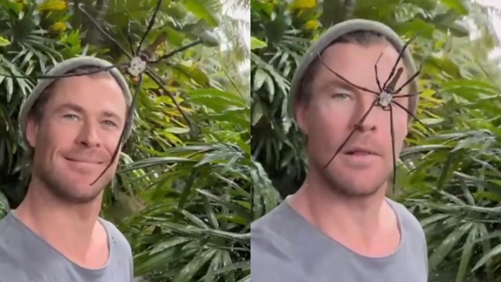 Nas imagens, ele posiciona o celular atrás da teia, dando a ilusão de que a aranha está em seu rosto. Após um movimento suspeito do aracnídeo, Hemsworth aparenta se assustar.