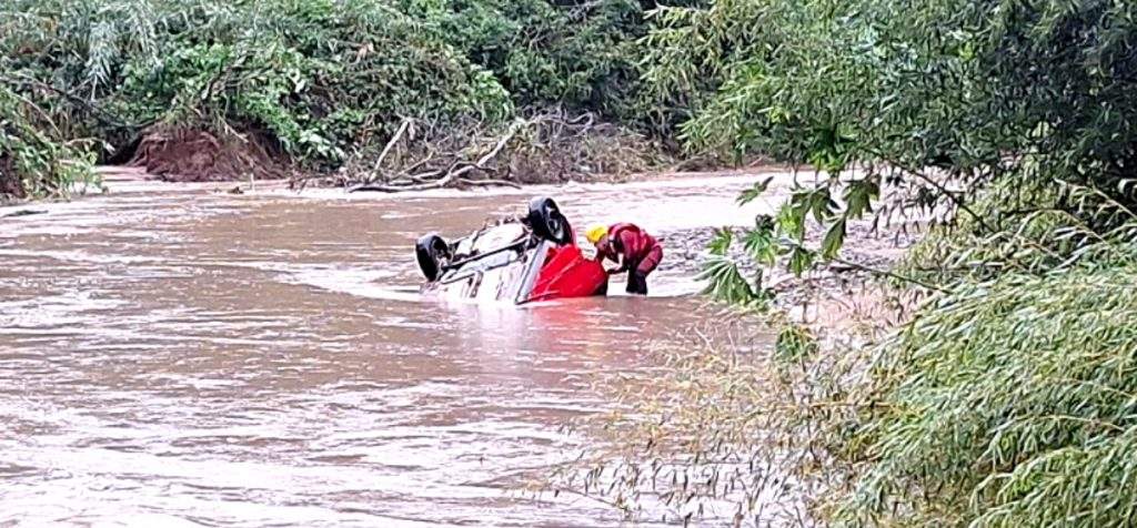 Em Candelária, uma mulher de 54 anos morreu depois de o veículo em que estava ser arrastado pela correnteza ao tentar atravessar uma ponte alagada.