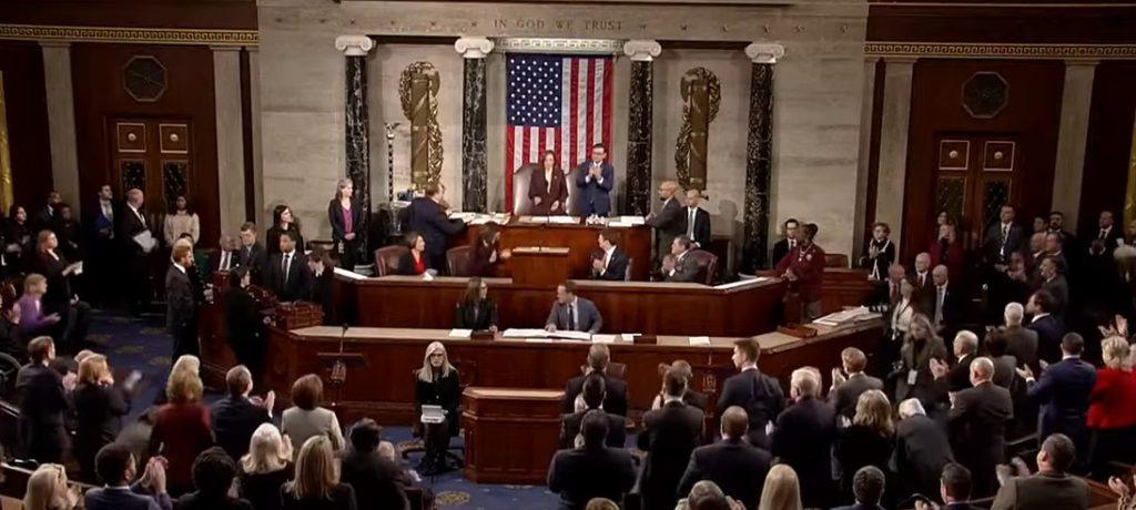 A atual vice-presidente e candidata derrotada, Kamala Harris, presidiu os trabalhos, que duraram cerca de 30 minutos. JD Vance, senador pelo Estado de Ohio e vice-presidente eleito, também esteve presente.