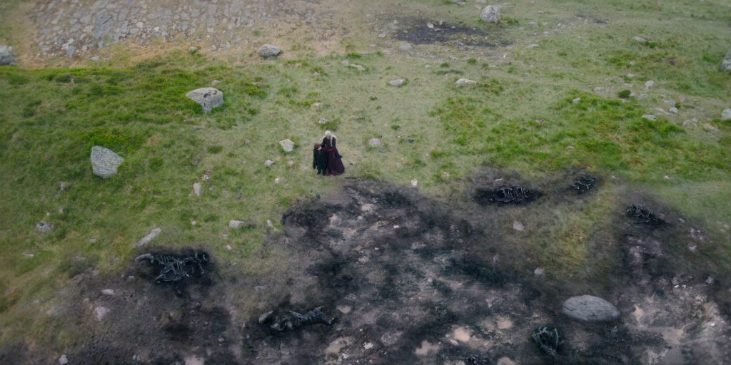 No sexto episódio de A Casa do Dragão (intitulado Os Plebeus), há uma cena em que Rhaena caminha por um campo no Vale de Arryn e descobre uma grande área queimada e repleta de ossos carbonizados. Quando a garota questiona Lady Jeyne, descobrimos que o culpado pela destruição é um dragão selvagem que se alimenta das ovelhas da região.