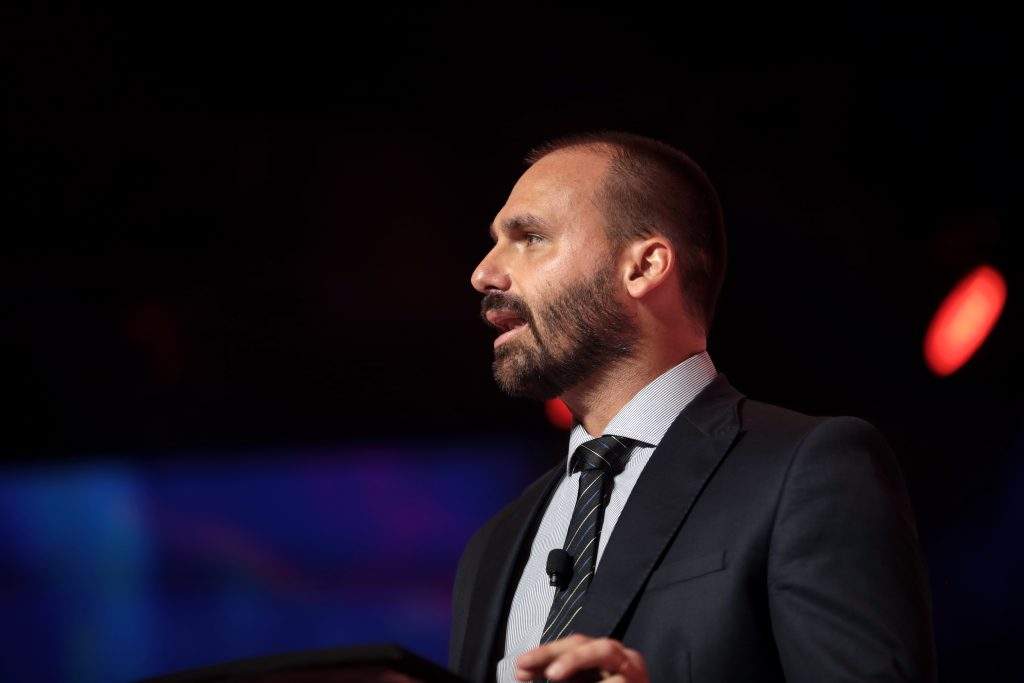 O deputado federal licenciado Eduardo Bolsonaro (PL-SP) disse que a decisão do ministro Flávio Dino, do Supremo Tribunal Federal (STF), que tenta blindar o ministro Alexandre de Moraes contra as sanções da Lei Magnitsky é a “materialização da crise institucional que o Brasil atravessa”.