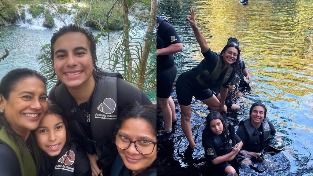 “Tem uma turminha bem feliz em conhecer as águas e os habitantes de Bonito”, escreveu na legenda. Nos comentários, o ator Ary Fontoura aprovou a publicação, deixando emojis de coração.