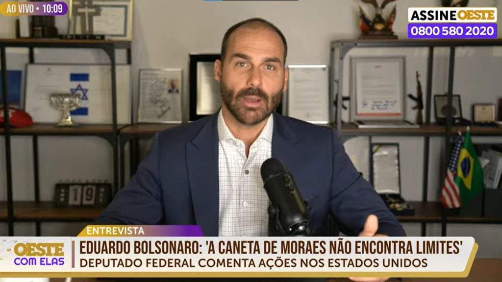 Em entrevista ao Oeste com Elas nesta sexta-feira, 25, o deputado federal licenciado Eduardo Bolsonaro (PL-SP) comentou o desenrolar de suas interações com aliados na política brasileira durante sua atuação nos Estados Unidos. Ele destacou a importância de fortalecer a comunicação internacional e avaliou o desempenho do deputado Nikolas Ferreira (PL-MG) nas redes sociais.