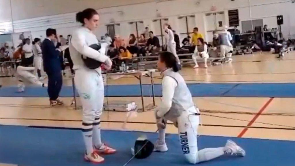 A esgrimista Stephanie Turner decidiu não competir contra a atleta transgênero Redmond Sullivan durante um torneio nos Estados Unidos, no último domingo, 30. Na ocasião, ela tirou sua máscara e se ajoelhou diante de sua oponente. pic.twitter.com/JTVkNQI3ts