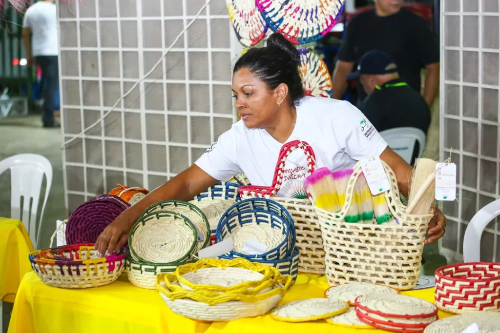 Um dos destaques no primeiro dia da Feira da Agricultura Familiar, Povos Tradicionais e Economia Solidária, nesta quinta (21), foi o artesanato trazido por expositores de vários cantos do Piauí, e que está sendo comercializado no Espaço Trança. A Feira segue até o sábado (23) no Parque Potycabana, a partir das 17h, e reúne cerca de 150 produtores de todos os territórios do estado.