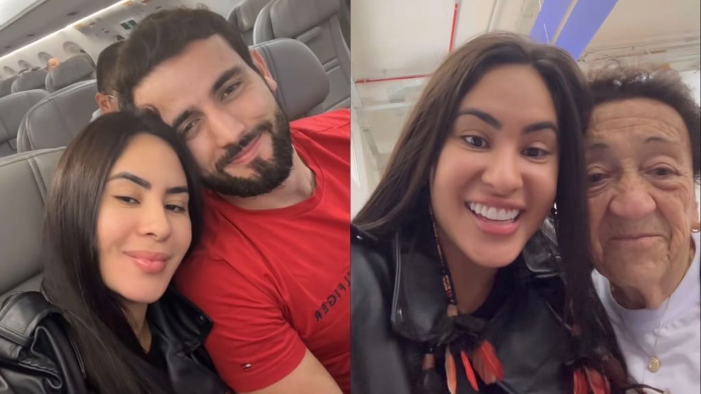 Ao aparecer em um registro ao lado do namorado, ainda no avião, a ex-BBB ressaltou que “estava contando as horas e os dias” por esse momento.