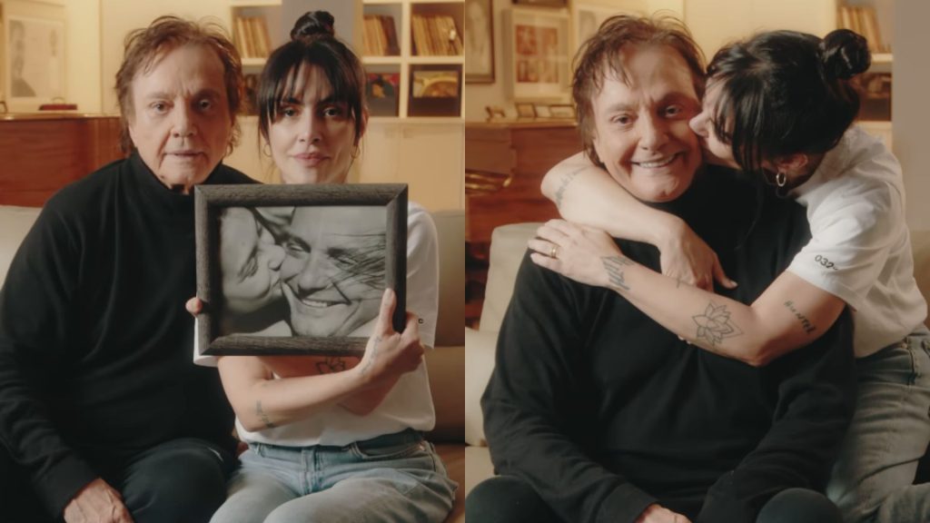 O vídeo faz parte das comemorações para marcar os 70 anos do cantor, que faz aniversário em novembro. Fábio Jr e Cleo — fruto de seu relacionamento com Gloria Pires — aparecem olhando fotos antigas e recriando as poses no sofá de casa.