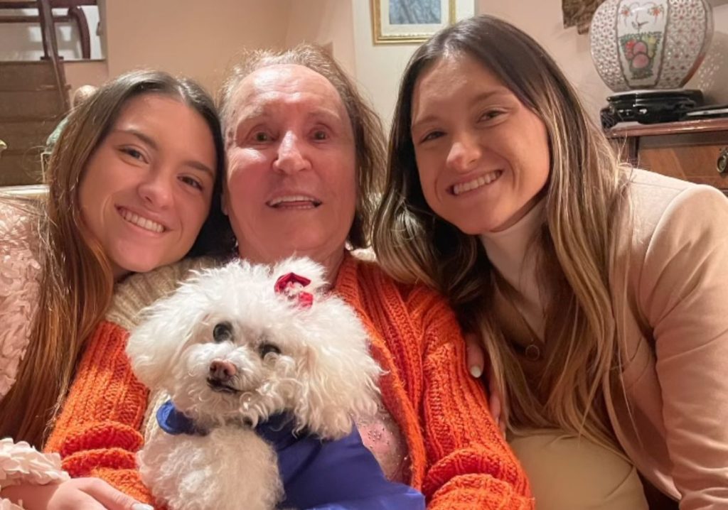 As filhas de gêmeas do apresentador Gugu Liberato (1959-2019), Sofia e Marina, de 20 anos, compartilharam nesta terça-feira (13) um registro raro com a avó paterna, Maria do Céu Moraes, 94.