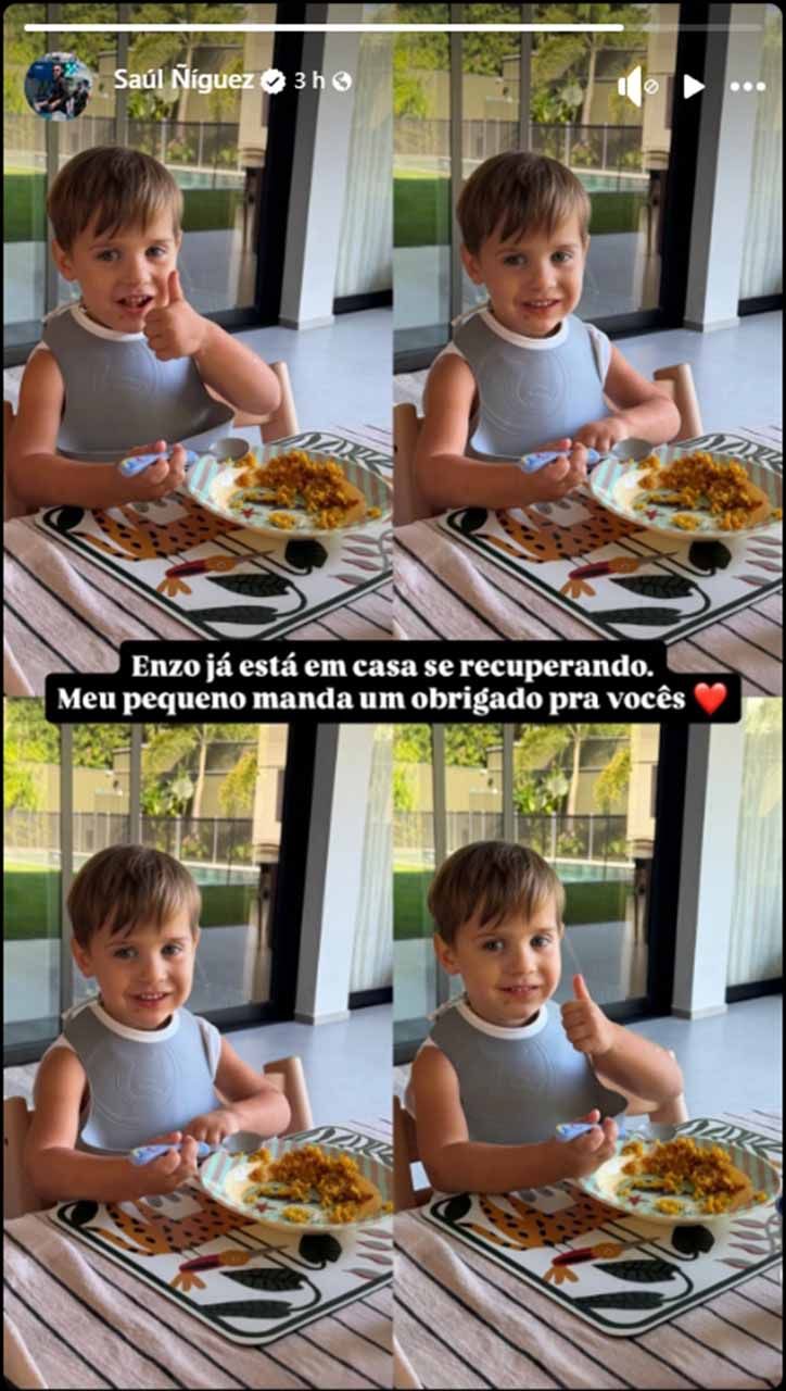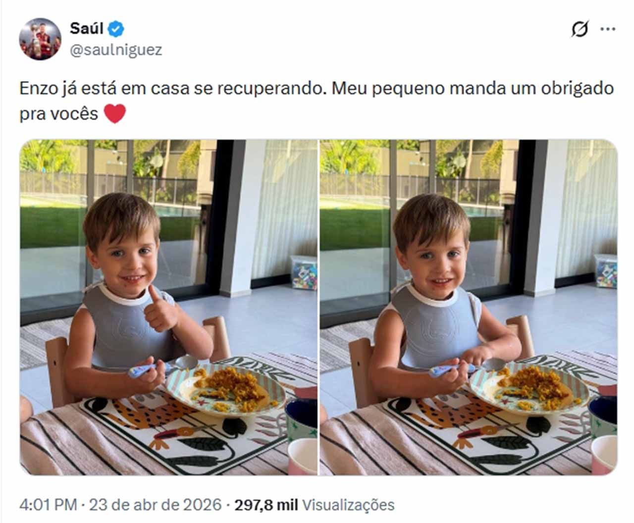 “Enzo já está em casa se recuperando. Meu pequeno manda um obrigado pra vocês”, escreveu espanhol no “X”.