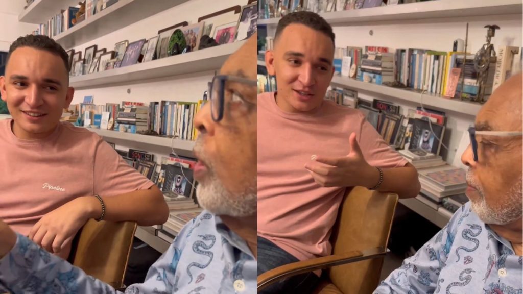 Nas redes sociais de Gilberto Gil, 82, o ícone da MPB apareceu tendo “aula particular de piseiro” com o cantor João Gomes, 21.