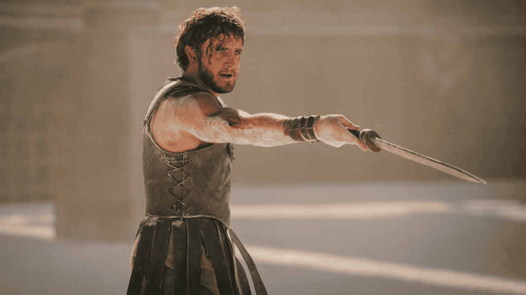 Lucius, já adulto, vive uma vida pacata com sua família longe de Roma. Quando o Império destrói seu novo lar, ele volta para a terra da sua mãe e se vê obrigado a virar um gladiador. Não vou entrar tanto na história, já que o Olhar Digital tem um outro texto só sobre esse assunto.