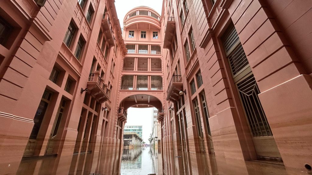A redução no nível das águas permitiu, pela primeira vez desde o início da enchente no Rio Grande do Sul, o acesso a pé aos prédios. Anteriormente, era possível chegar aos locais somente por meio de bote.