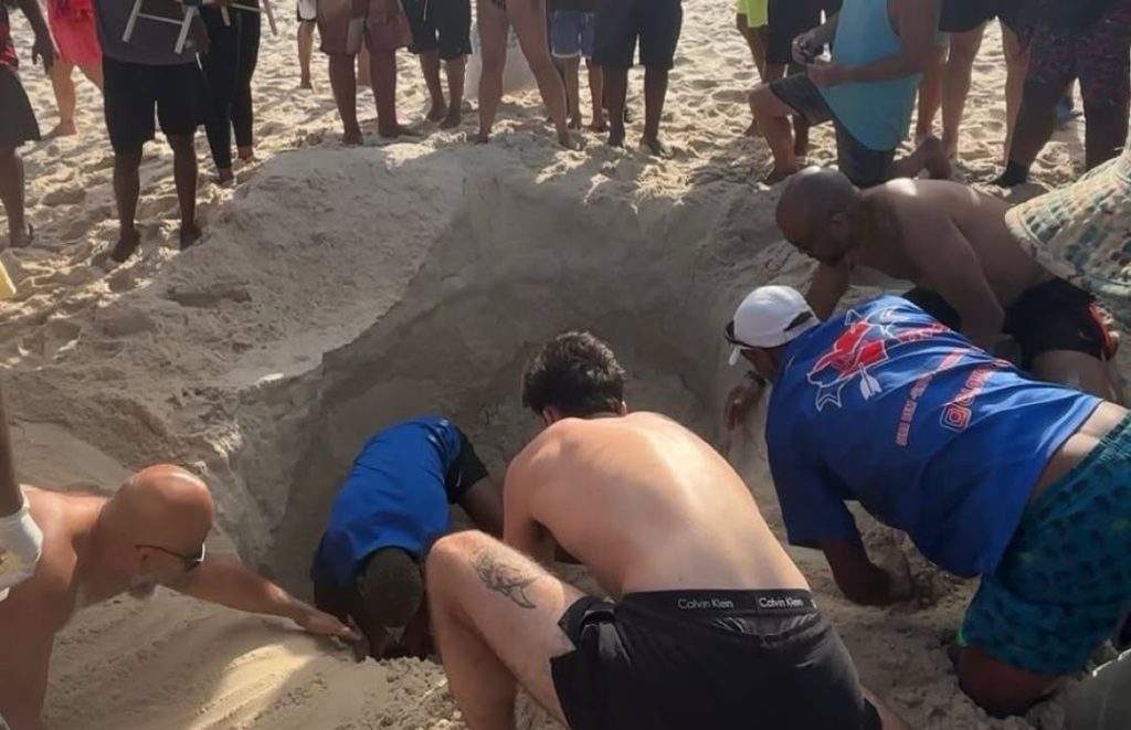 O britânico cavou um buraco de mais de 2 metros de profundidade na Praia de Copacabana. Mesmo com a altura acima da cabeça, ele decidiu seguir com a empreitada divertida, quando, num descuido, as paredes desmoronaram sobre a cabeça dele. O lugar quase virou uma cova — não fosse o calor humano típico da Cidade Maravilhosa