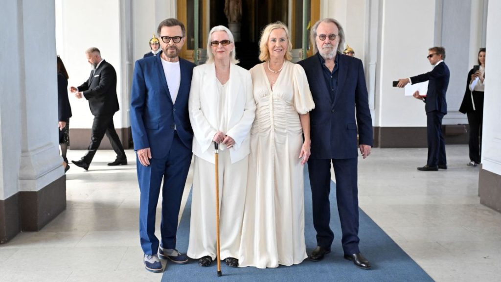 Agnetha Faltskog, Bjorn Ulvaeus, Benny Andersson e Anni-Frid Lyngstad, que raramente fazem aparições públicas juntos e estão na casa dos 70 anos, receberam a ordem das mãos do rei Carl XVI Gustaf “por contribuições muito distintas na vida musical sueca e internacional”, segundo a Corte Real.
