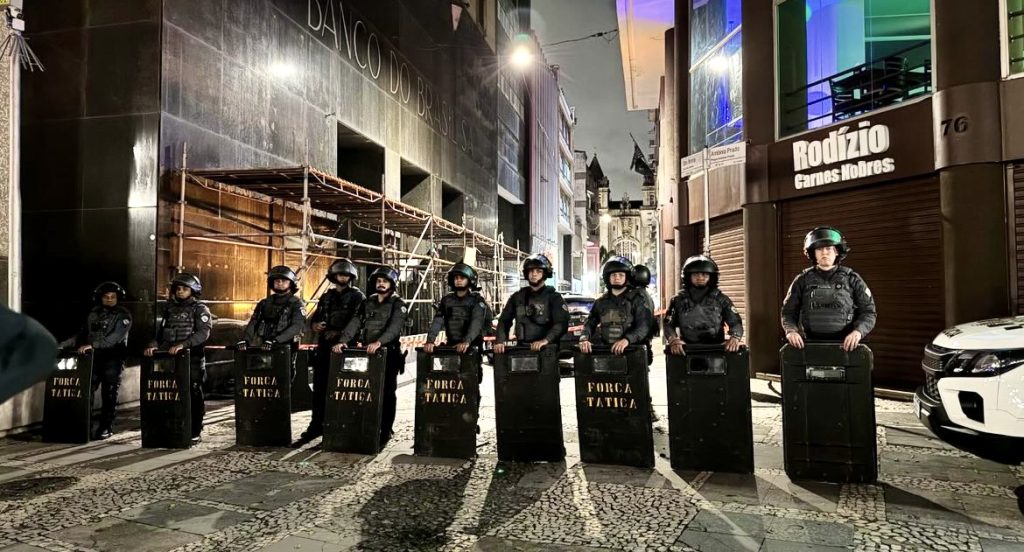 Nas redes sociais, o movimento publicou uma foto dos agentes policiais com a legenda: “Polícia militar, a mando do governador Tarcísio de Freitas, reprime famílias que lutam pelo direito à moradia”.