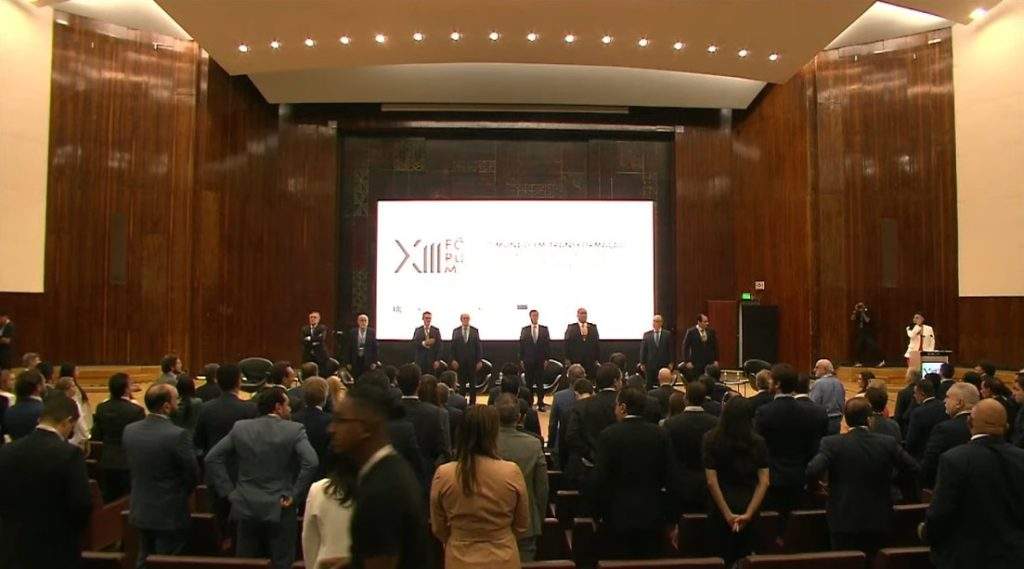 A cerimônia de abertura do fórum teve a presença de autoridades como o presidente da Câmara, Hugo Motta (Republicanos-PB), o senador Eduardo Gomes (PL-TO), o presidente da OAB, Beto Simonetti, o presidente do Fórum de Integração Brasil-Europa, Vitalino Canas, o presidente da FGV, Carlos Ivan Simonsen Leal, e o diretor da FDUL Eduardo Vera-Cruz Pinto.