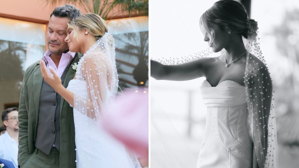 “Um mês do nosso sim”, escreveu ela na legenda da publicação que traz registros com o vestido feito pela estilista Lethicia Bronstein, acompanhado por um véu de três metros e 3.000 pérolas bordadas. Cliques do ensaio fotográfico antes do evento também foram publicados.