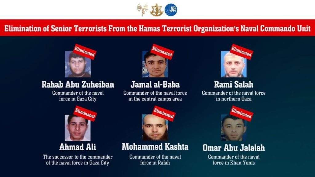 Uma série de operações militares realizadas na Faixa de Gaza resultou na morte de seis líderes das forças navais do Hamas, segundo anúncio feito pelas Forças de Defesa de Israel (FDI) e pela Agência de Segurança de Israel (ISA, sigla em inglês), nesta sexta-feira, 11.
