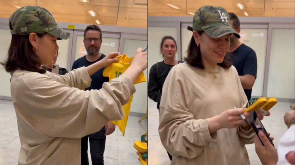 Lauren Jauregui, responsável pelo show de abertura em São Paulo, também desembarcou nesta segunda (29). Assim como Jessie, a ex-integrante do Fifth Harmony também foi recebida e falou com os fãs.