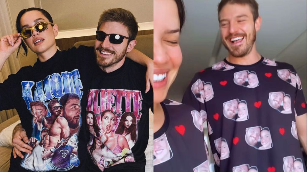 Nos stories de seu Instagram, Juliette apareceu com um pijama personalizado com fotos do casal estampadas. “Vem cá, meu amor”, pediu ela, chamando o namorado enquanto ria dos looks. “Vai ser meu pijama oficial agora”, afirmou Kaique combinando com a amada.