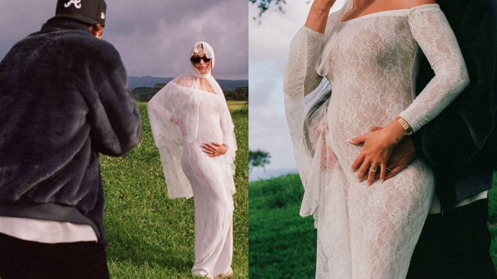 Nesta quinta-feira (9), Justin e Hailey Bieber compartilharam um novo ensaio de fotos, onde a modelo posa com a mão na barriga. O gesto foi suficiente para que os internautas comemorassem uma suposta gravidez e parabenizassem os papais de primeira viagem.