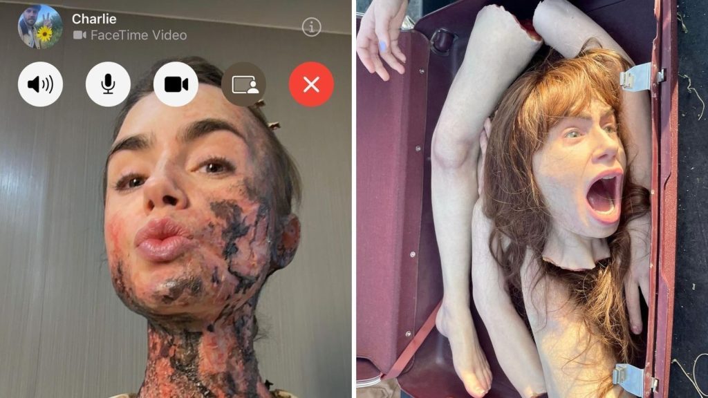 No álbum publicado na sexta-feira (5), há registros do rosto de Lily com queimaduras falsas, além de alguns bonecos que simulam uma cabeça decapitada. “Alerta de spoiler! Finalmente posso compartilhar os bastidores insanos de MaXXXine“, escreveu ela.