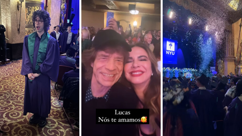 Em suas redes sociais, a apresentadora compartilhou diversos vídeos da colação de grau. Além de compartilhar fotos do filho de beca e trechos da comemoração, em um dos registros, Gimenez grava um vídeo ao lado do vocalista dos Rolling Stones e escreve: “Lucas, nós te amamos” (veja acima).