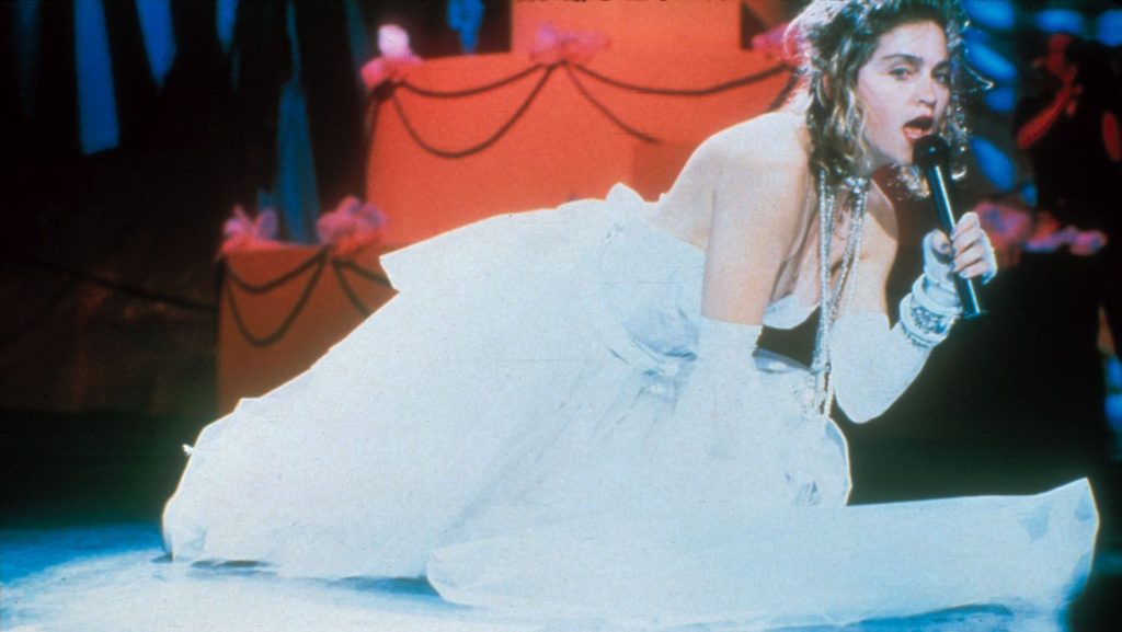 As duas mais notáveis foram no VMA: em 1984 e 2003. Na primeira, Madonna se vestiu de noiva com um cinto que continha as palavras “boy toy”. Na segunda, quem fez isso foi Christina Aguilera e Britney Spears. A rainha do pop surgia depois para cantar “Hollywood” e encerrava a performance dando um beijo nas duas.