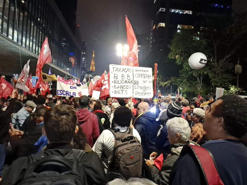 Em contrapartida, cartazes que defendiam a taxação dos chamados “super-ricos” foram expostos na Avenida Paulista. De acordo com as pessoas presentes na manifestação, a medida “é necessária para trazer justiça social ao país”.