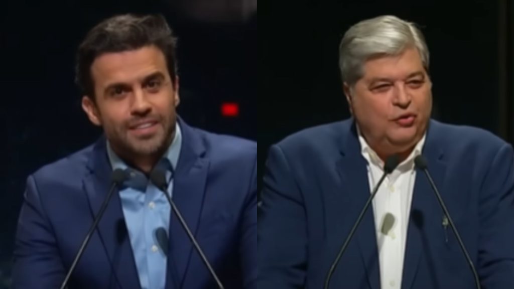 Ao ser provocado, o comunicador deixou seu púlpito, proferiu insultos ao empresário, pegou a cadeira de Marina Helena e arremessou contra o candidato do PRTB.