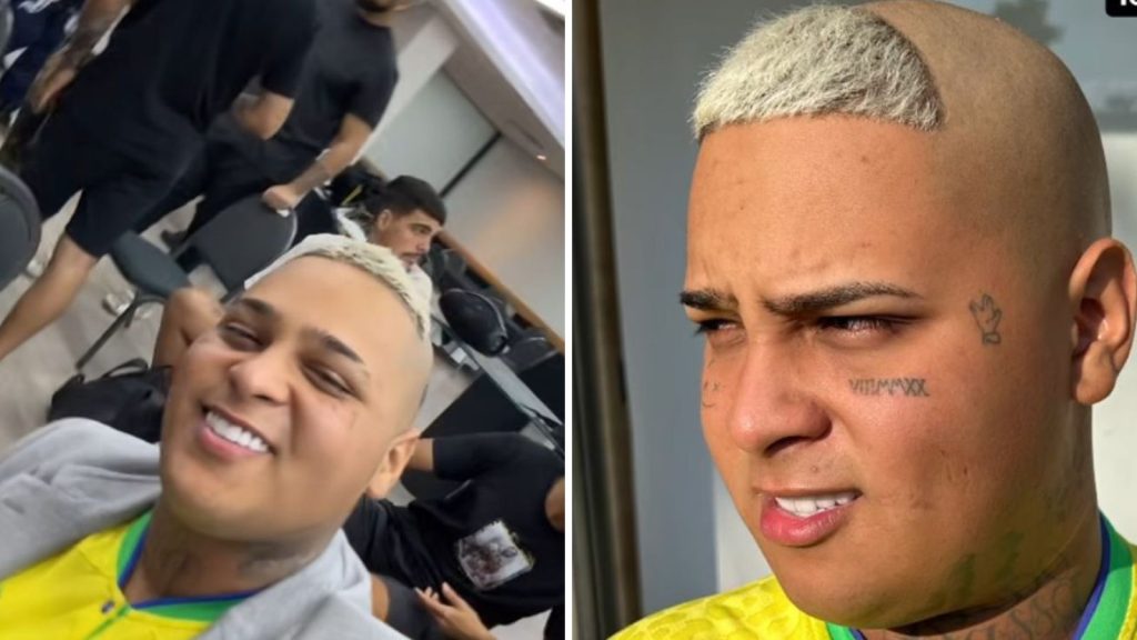 Basicamente, o estilo consiste em manter a cabeça totalmente raspada, deixando apenas um pouco de cabelo acima da altura da testa. Para completar, ele também entrou na tendência dos fios platinados. “Técnico fenômeno”, escreveu o funkeiro na publicação.