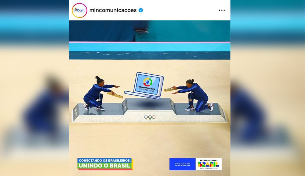 Em um meme publicado no Instagram na segunda-feira 29, o Ministério das Comunicações apagou a ginasta Rebeca Andrade do pódio da Olimpíada de Paris 2024.