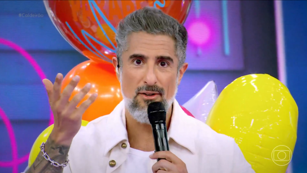 O apresentador Marcos Mion ganhou de aniversário uma mesa de doces e um bolo especial de Ana Maria Braga. A surpresa aconteceu no programa Caldeirão Com Mion, da TV Globo, neste sábado (22).