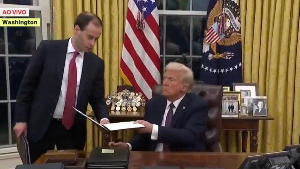 Enquanto assinava os primeiros decretos de seu governo, Trump foi questionado sobre a relação com o Brasil e respondeu: “[A relação é] ótima, ótima. Eles precisam de nós muito mais do que precisamos deles. Nós não precisamos deles, eles precisam de nós. Todo mundo precisa de nós.”