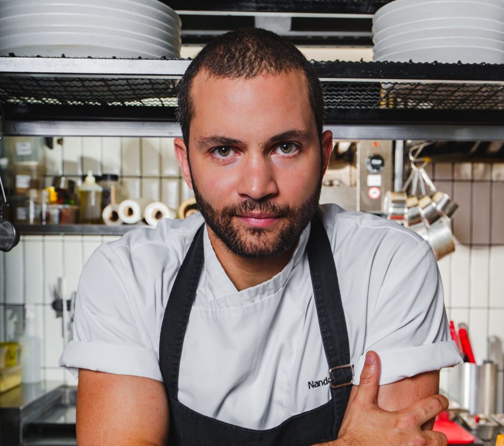 Especialista em churrasco, parrilla, frutos do mar e vegetais, Nando apresenta sua gastronomia contemporânea e descomplicada no restaurante Nomo, na Vila Madalena, em São Paulo. O estabelecimento entrou na categoria Bib Gourmand do Guia Michelin, que reconhece locais agradáveis com boa comida e preço.