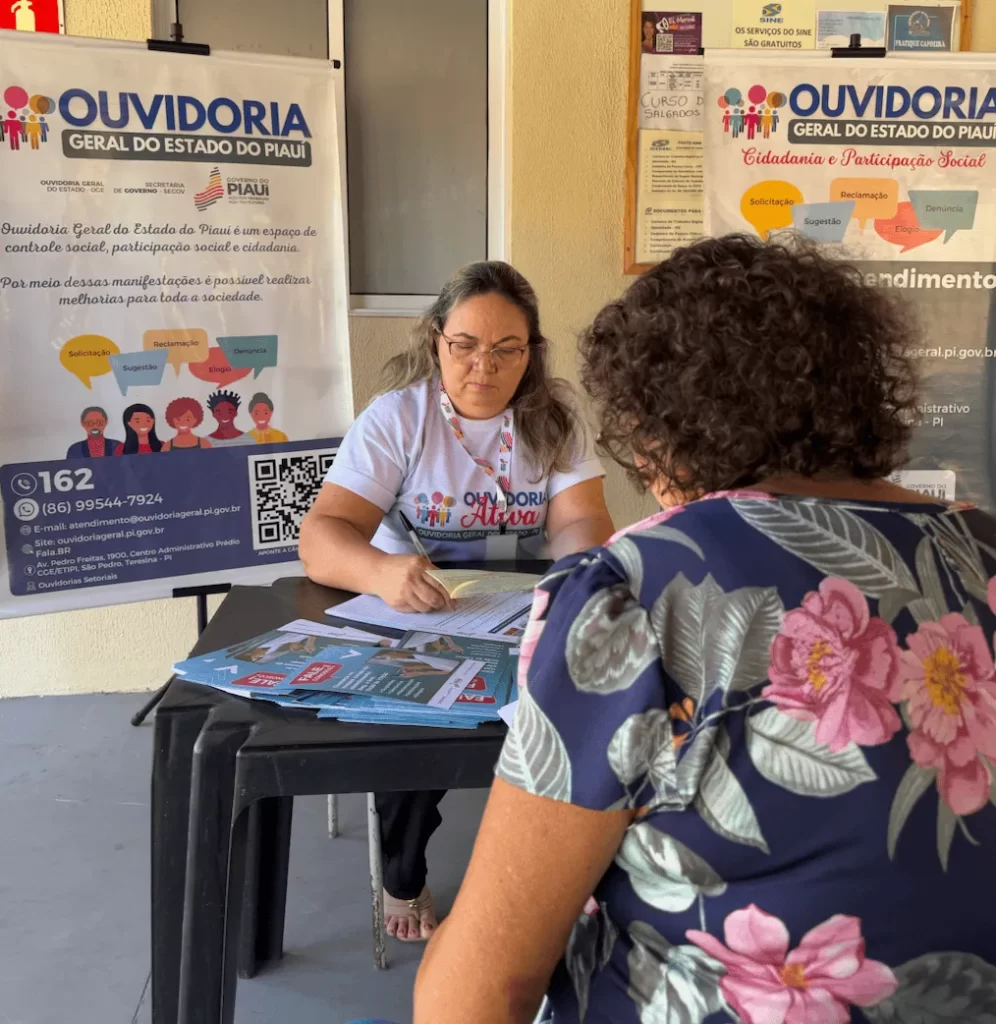Atendimento presencial na sede da OGE-PI e nas Ouvidorias Setoriais.