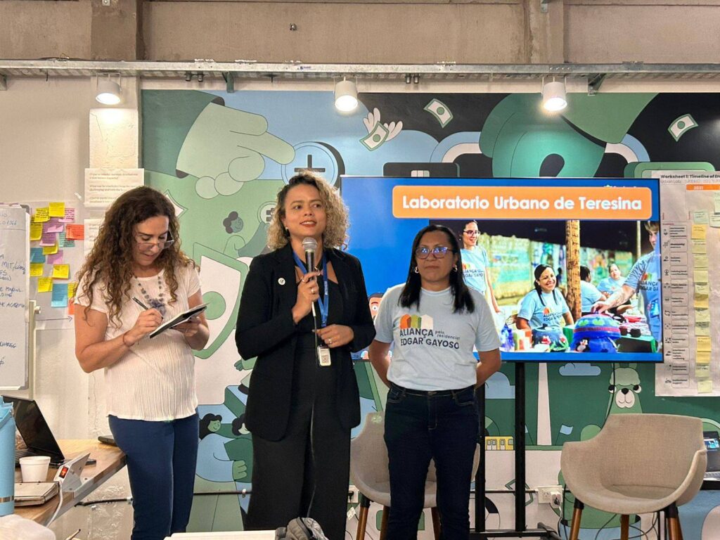 No primeiro dia, a delegação apresentou a trajetória do Laboratório Urbano de Teresina, destacando avanços, aprendizados e estratégias para continuidade das ações no território. Entre os destaques estiveram os projetos Quintais Verdes e Praça dos Sonhos, desenvolvidos no Residencial Edgar Gayoso com forte participação popular.