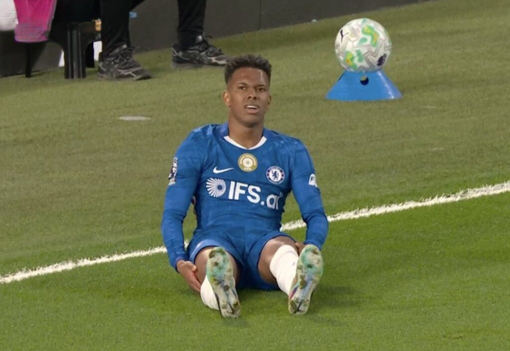 Estêvão voltou a preocupar após deixar o campo lesionado com apenas 14 minutos, no duelo entre Chelsea e Manchester United, neste sábado (18), pela Premier League.