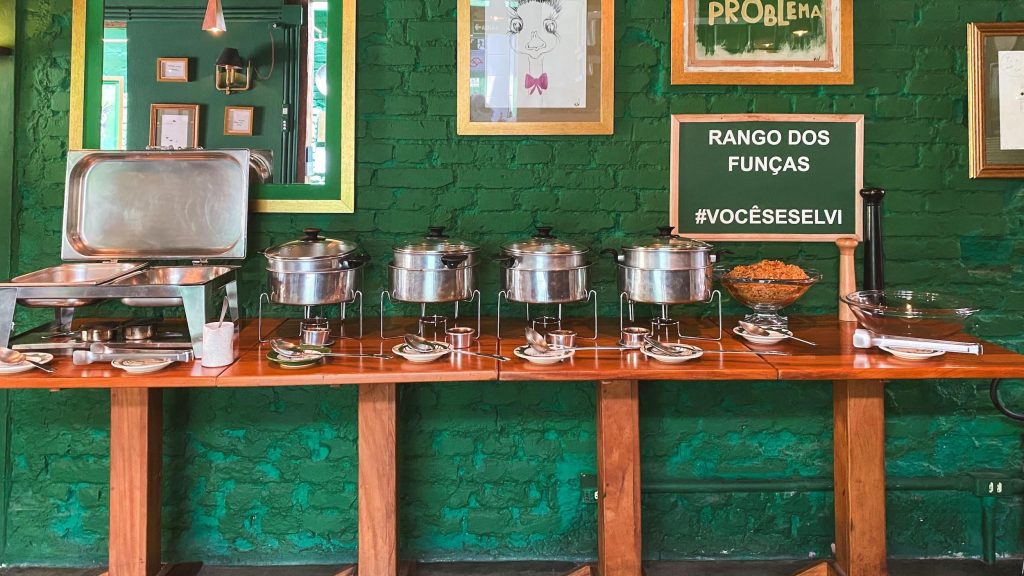Por R$ 68, dá para se servir à vontade de um bufê repleto de opções como picadinho de carne com legumes, banana grelhada na manteiga, feijão, farofa e arroz. Há quem fique com vontade de trabalhar no Ema só pelo “rango dos funças”.
