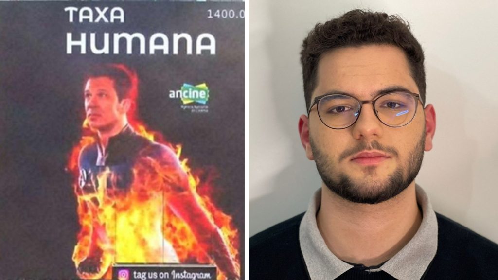 A ideia inicial era exibir uma coletânea de memes, que não foi aceita pela empresa. Então, Hugo editou o meme do “Taxa Humana” como um pôster de filme e conseguiu que a imagem fosse exibida.